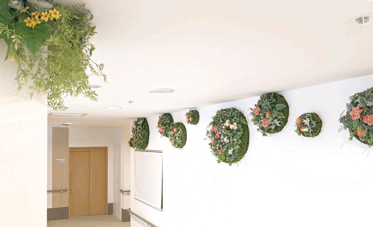 手間なく衛生的に装飾、緑化が可能なので、店舗やオフィスに留まらず医療現場でも採用されています。